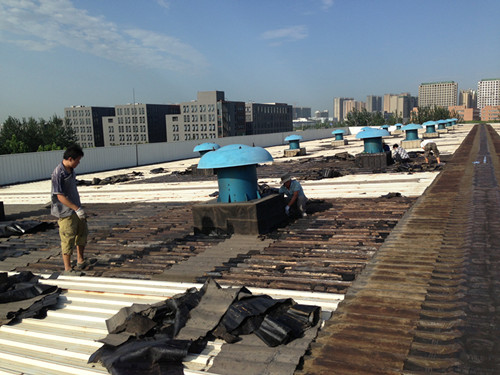 一、工程概況: 金屬屋面滲漏水位置主要分布在屋面的板縫銜接處,銹蝕導致板縫壓條固定點(diǎn)出現砂眼孔洞及縫隙,以及屋面彩鋼板邊墻包裹鐵皮翹邊縫隙…